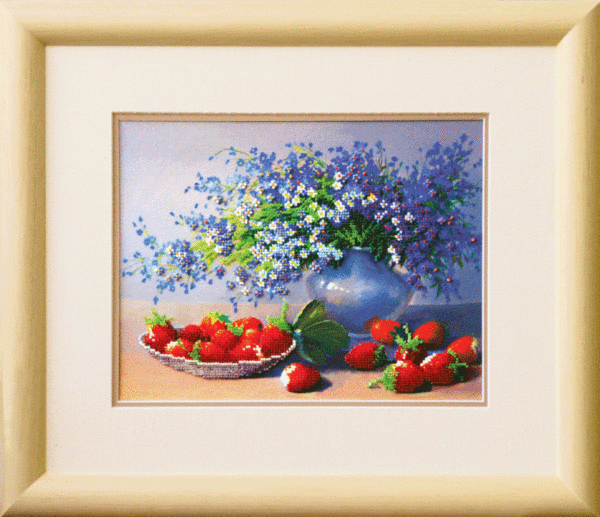 The kit contains: Preciosa beads – 19 colors, printed embroidery cloth, beaded needles and color pattern with instruction chart.