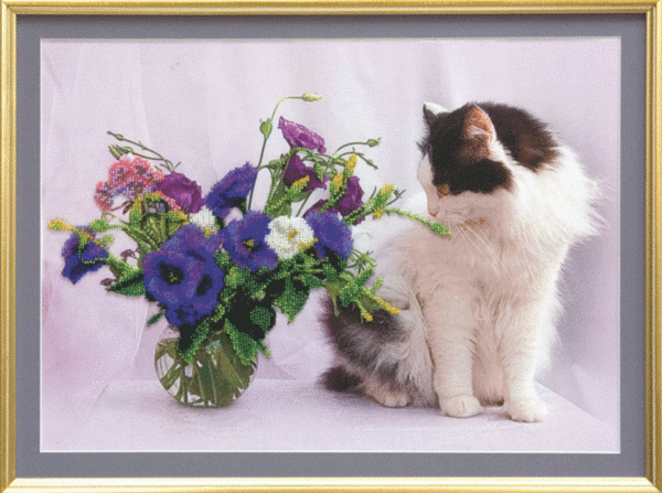 The kit contains: Preciosa beads – 19 colors, printed embroidery cloth, beaded needle and color pattern with instruction chart.