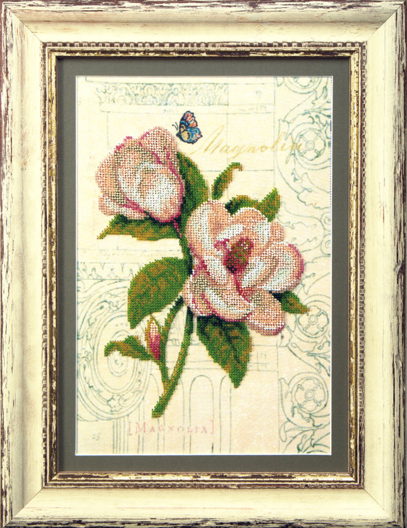 The kit contains: Preciosa beads - 14 colors, printed embroidery cloth, beaded needle and color pattern with instruction chart.
