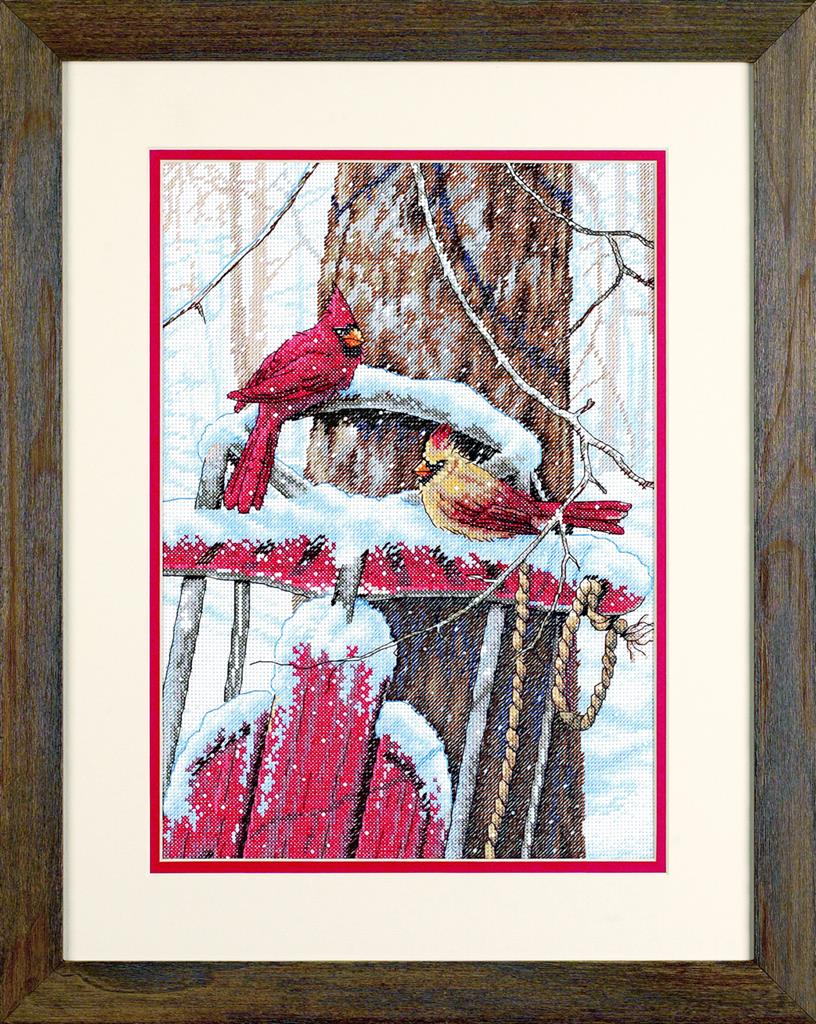 DIY "Cardinals on Sled" 9.8"x14.2"