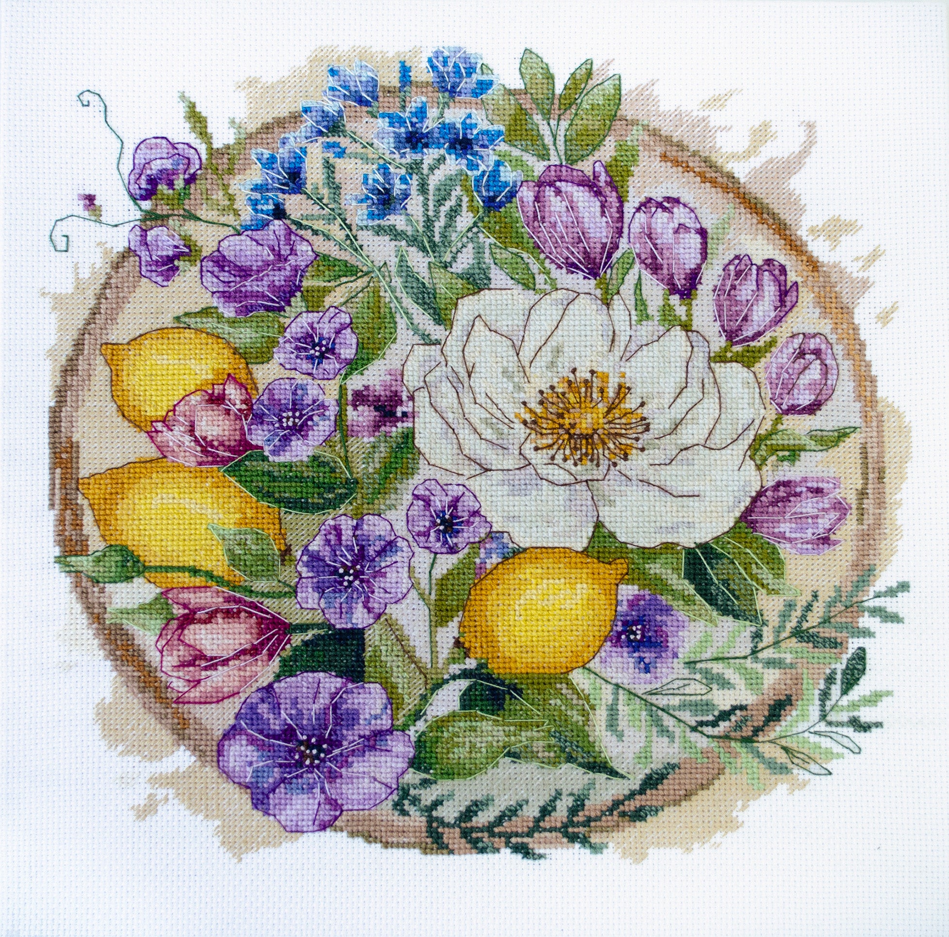 DIY Cross Stitch Kit "A floral moment" 10.2x10.2 in