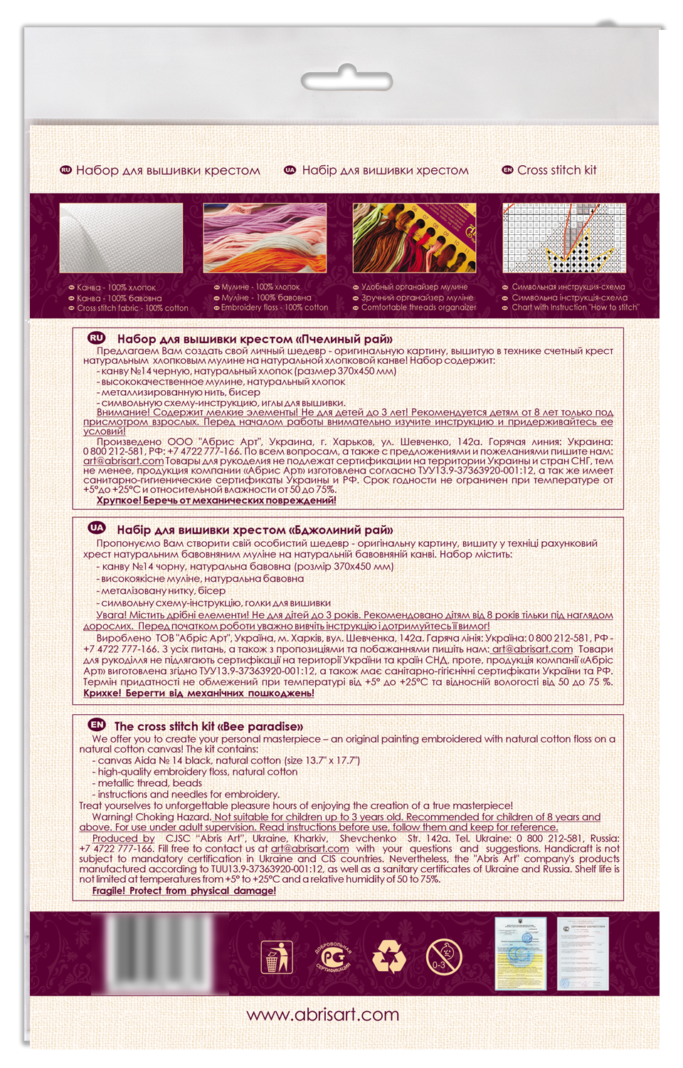 DIY Cross Stitch Kit "Bee paradise" 7.5"x8.7"