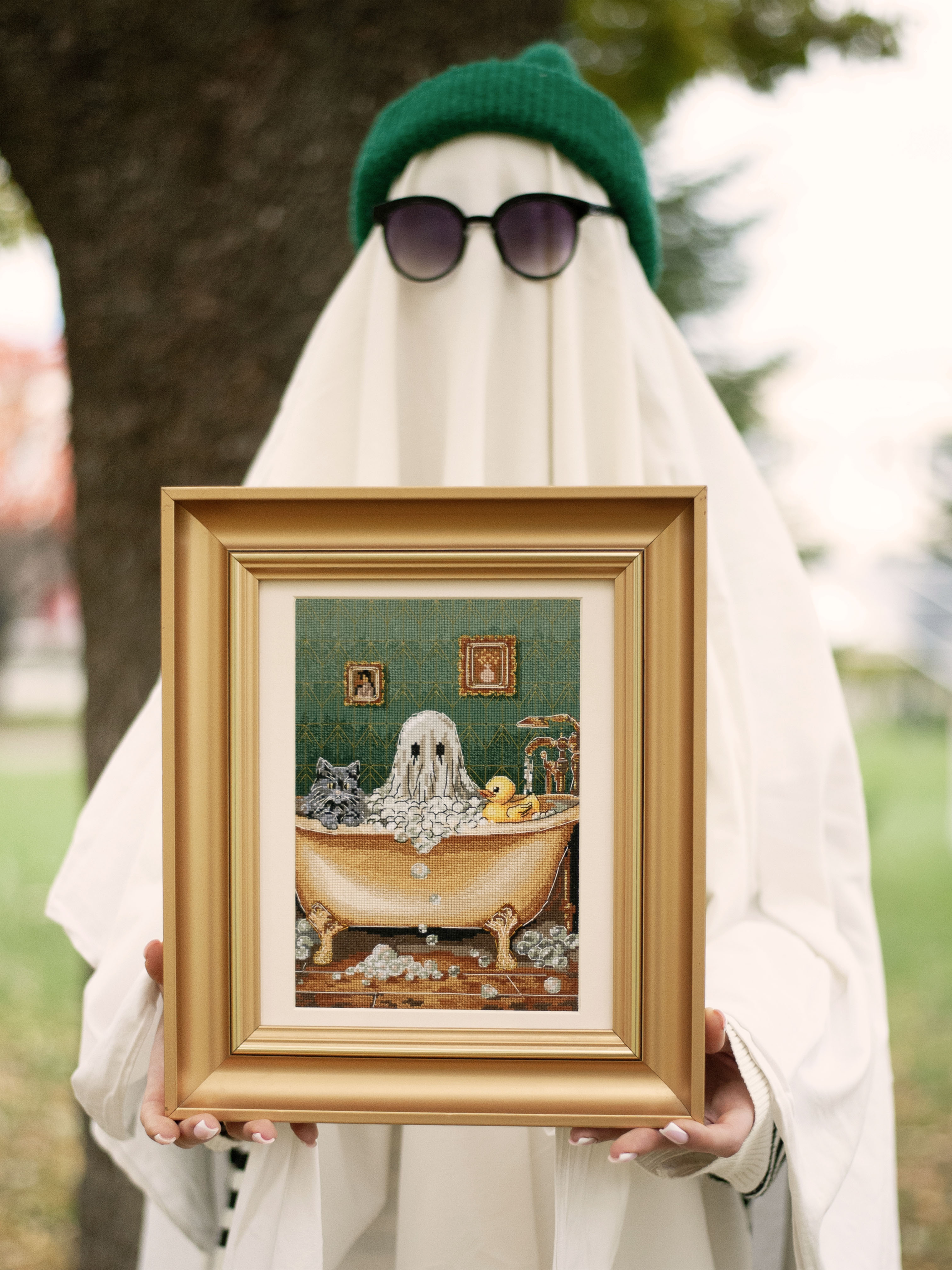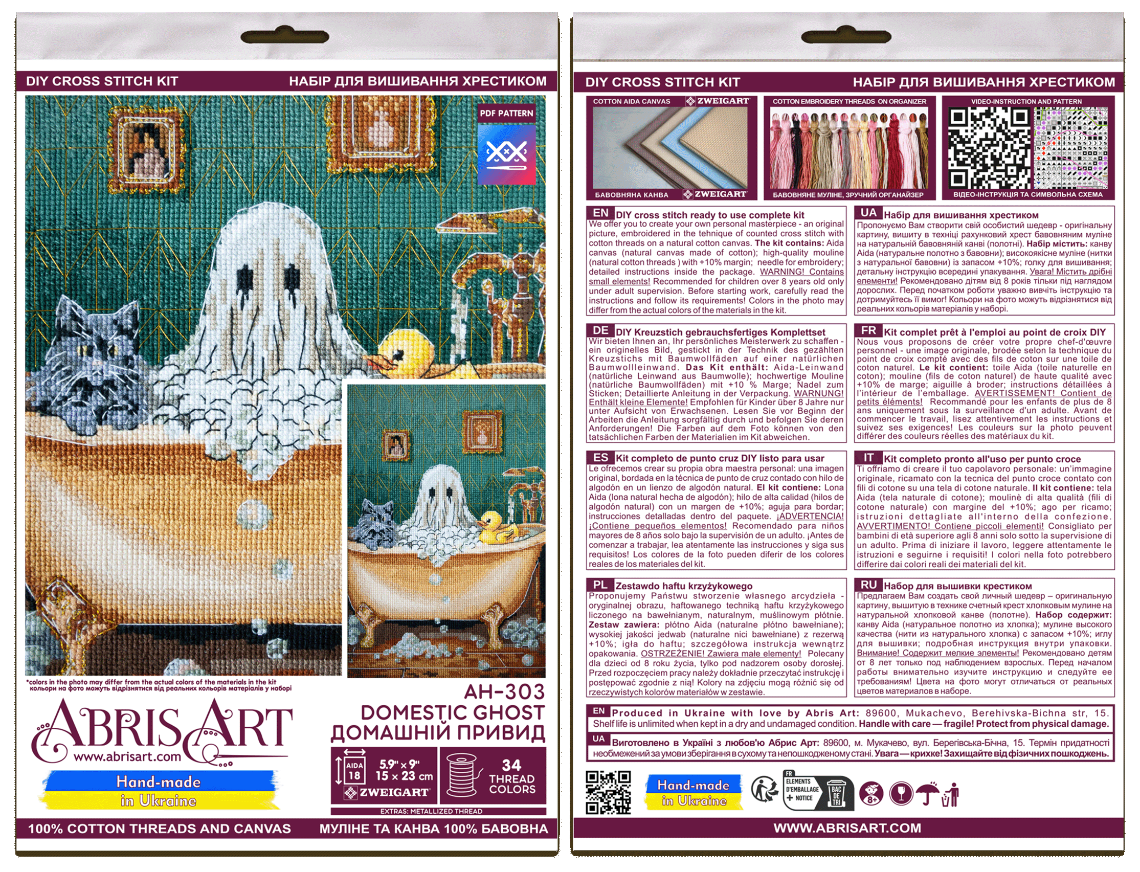 DIY Cross Stitch Kit "Domestic ghost" 5.9x9.1 in
