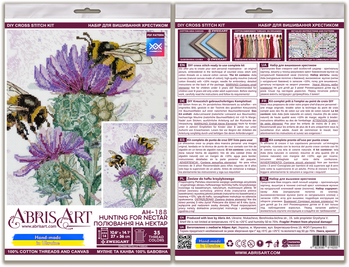 DIY Cross Stitch Kit "Hunting for nectar" 10.6x14.2 in