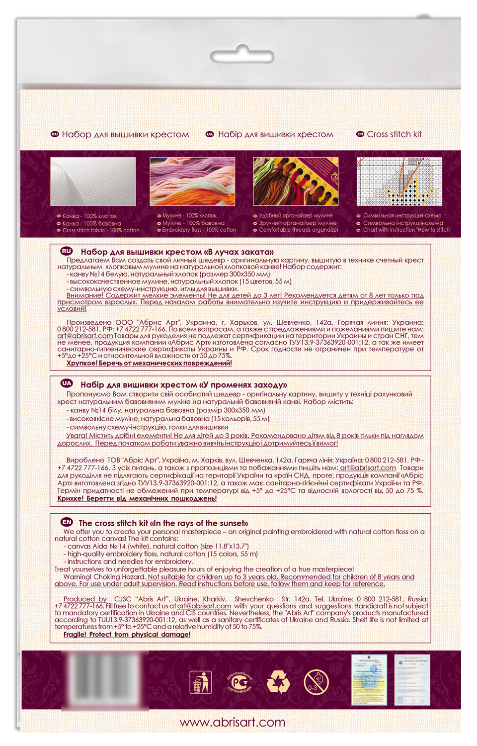 DIY Cross Stitch Kit "In the rays of the sunset" 7.9"x9.8"