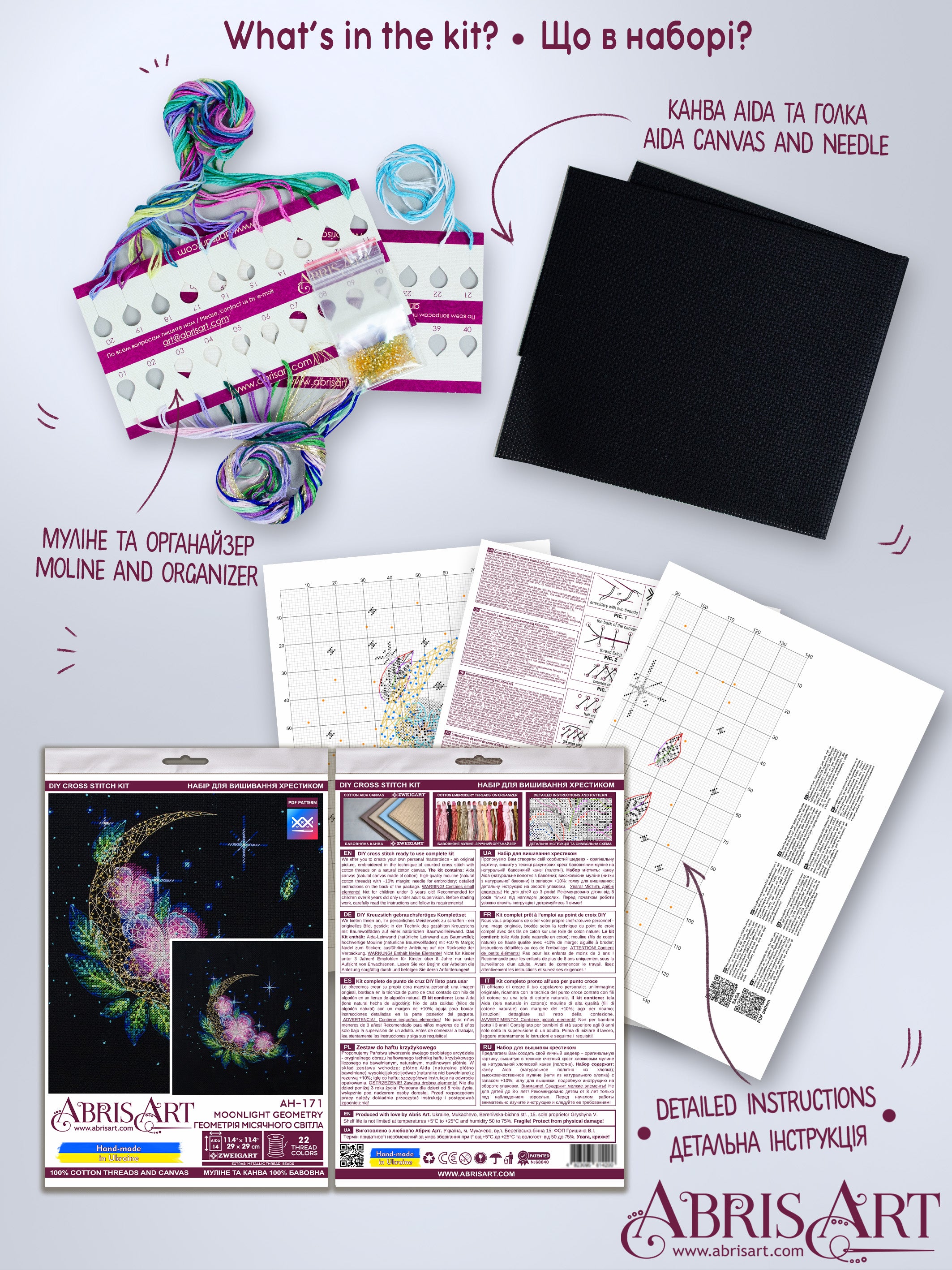 DIY Cross Stitch Kit "Moonlight geometry" 11.4x11.4 in