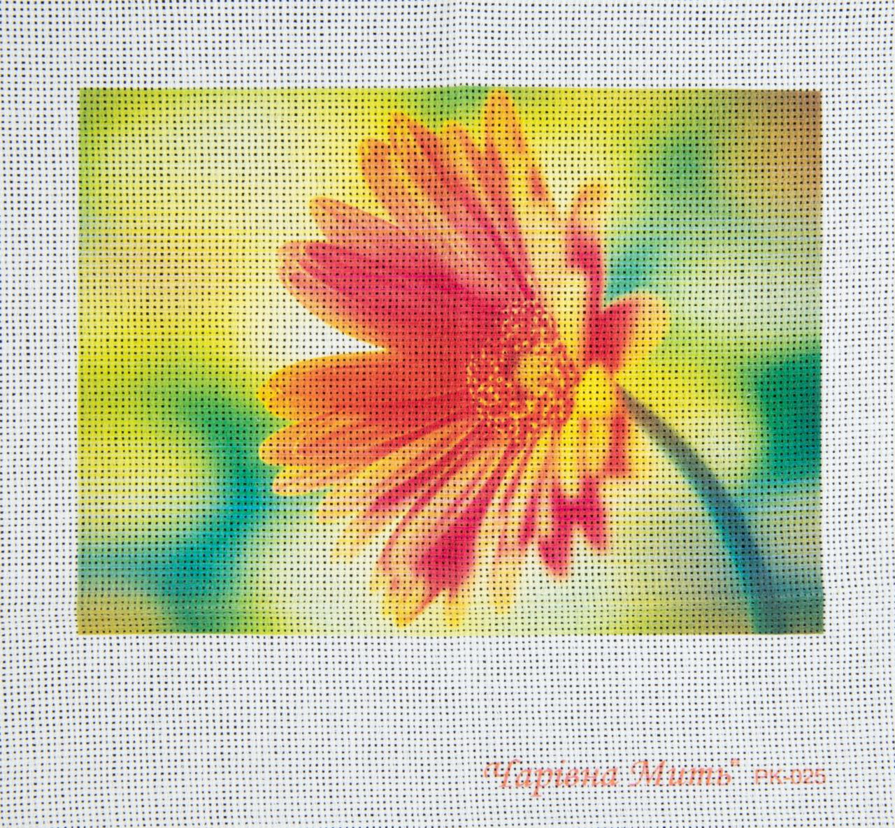 DIY Cross stitch kit with a printed canvas "Red daisy"