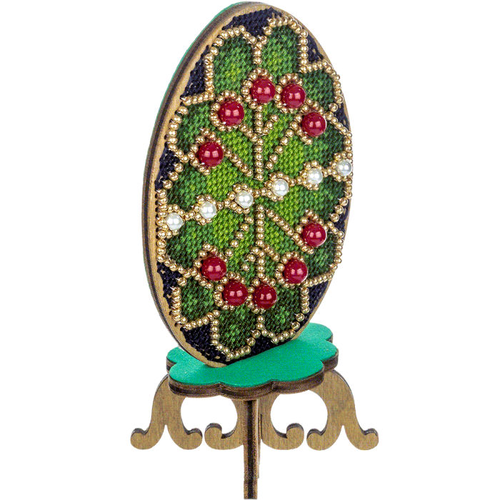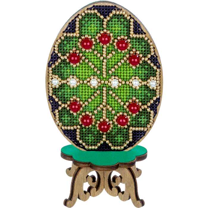 This is a DIY Cross Stitch on Wood kit for creating a decorative easter egg. The Easter egg is designed to embroider with included cotton floss and beads. The back side is smooth thanks to included felt.