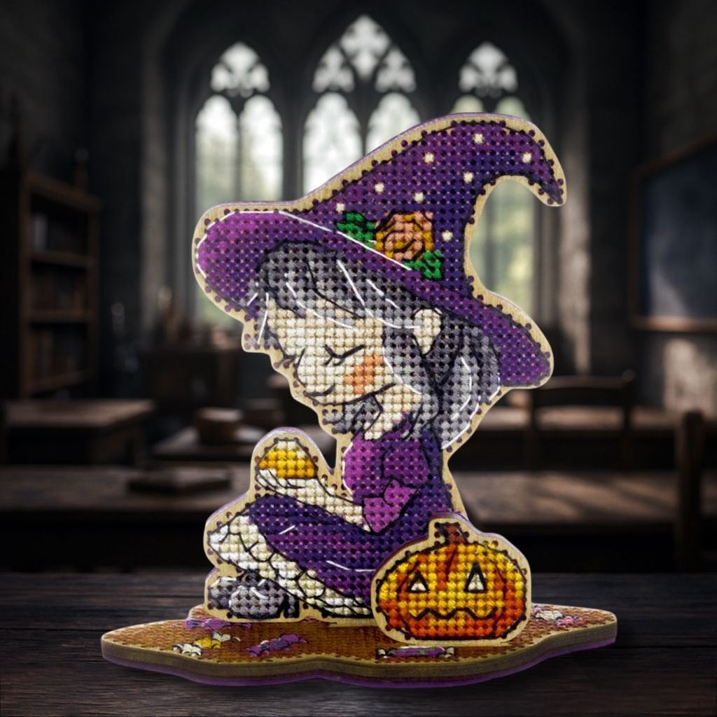 DIY Cross Stitch on Wood Kit "Little Witch In Purple"