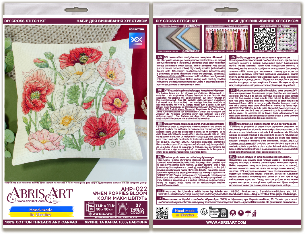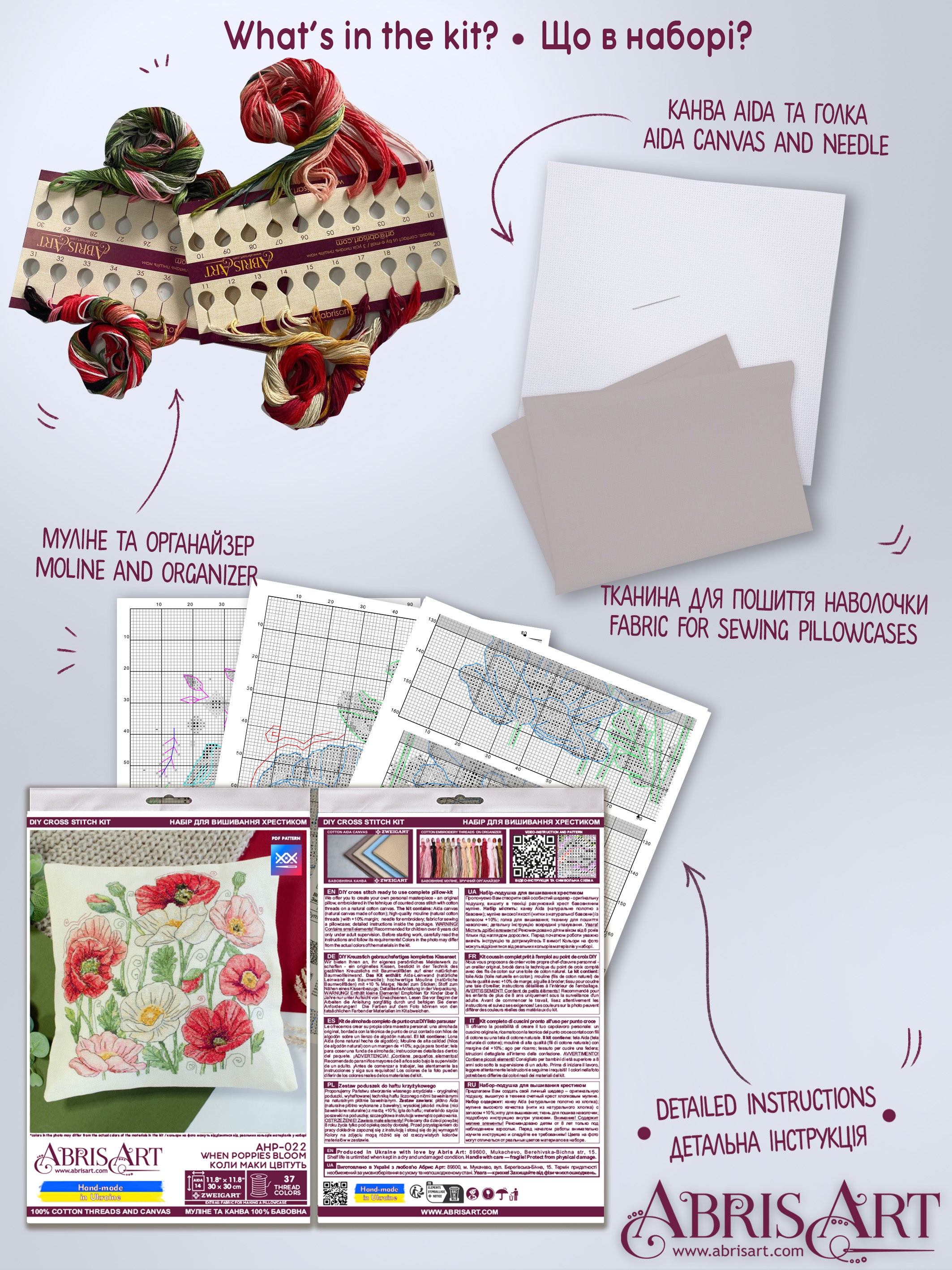 DIY Cross Stitch Pillow Kit "When Poppies Bloom"