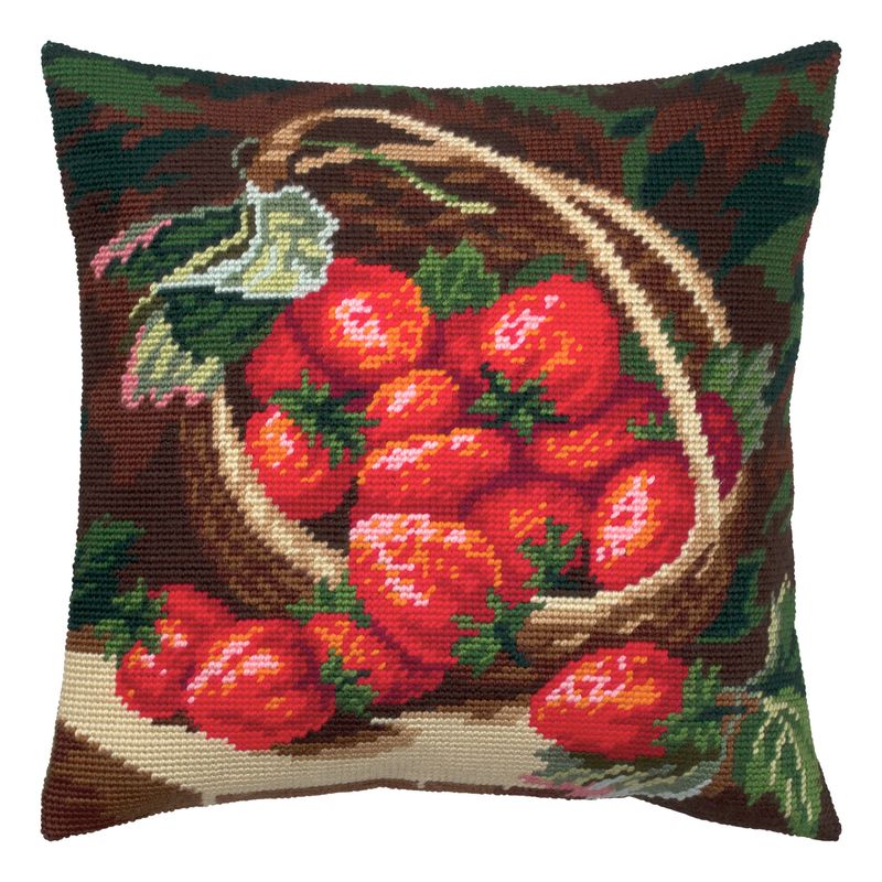 Needlepoint Pillow Kit "Strawberries in a Wicker Basket"