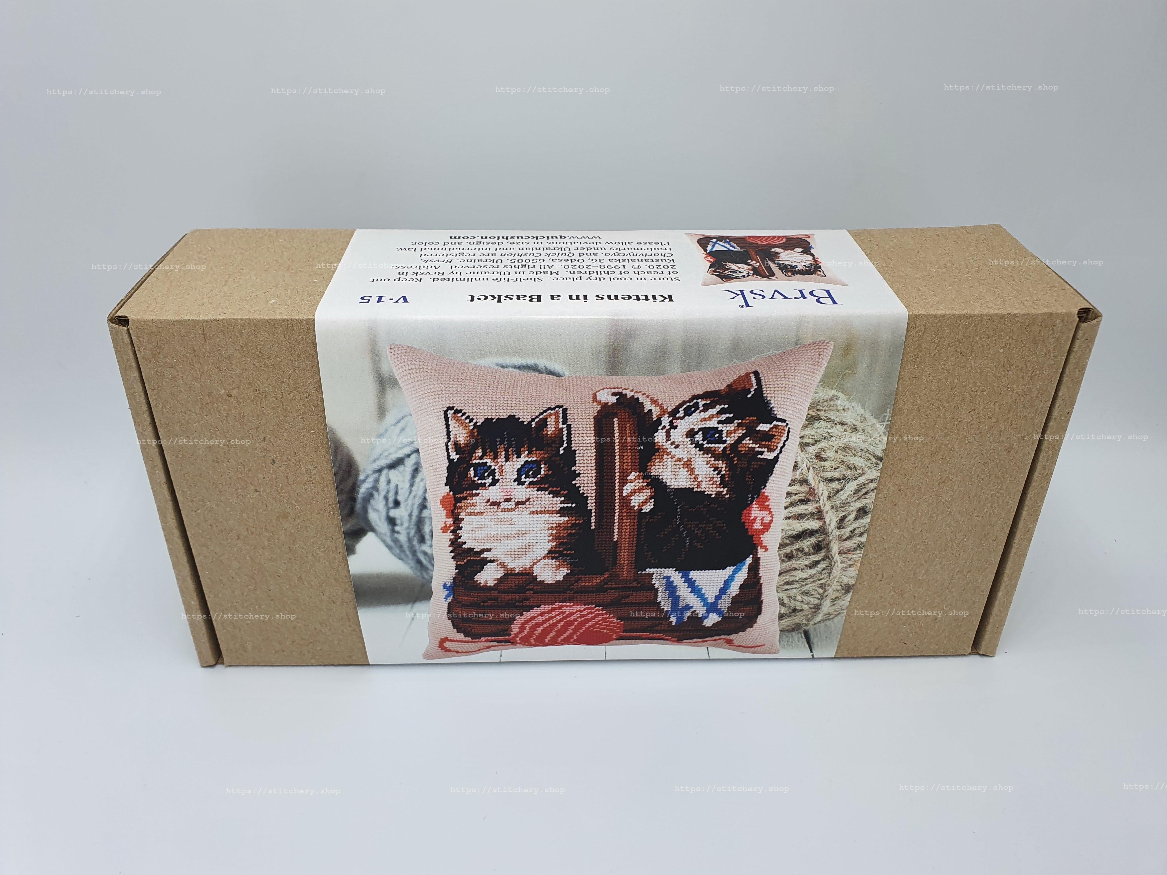 Needlepoint Pillow Kit "Kittens in a Basket"