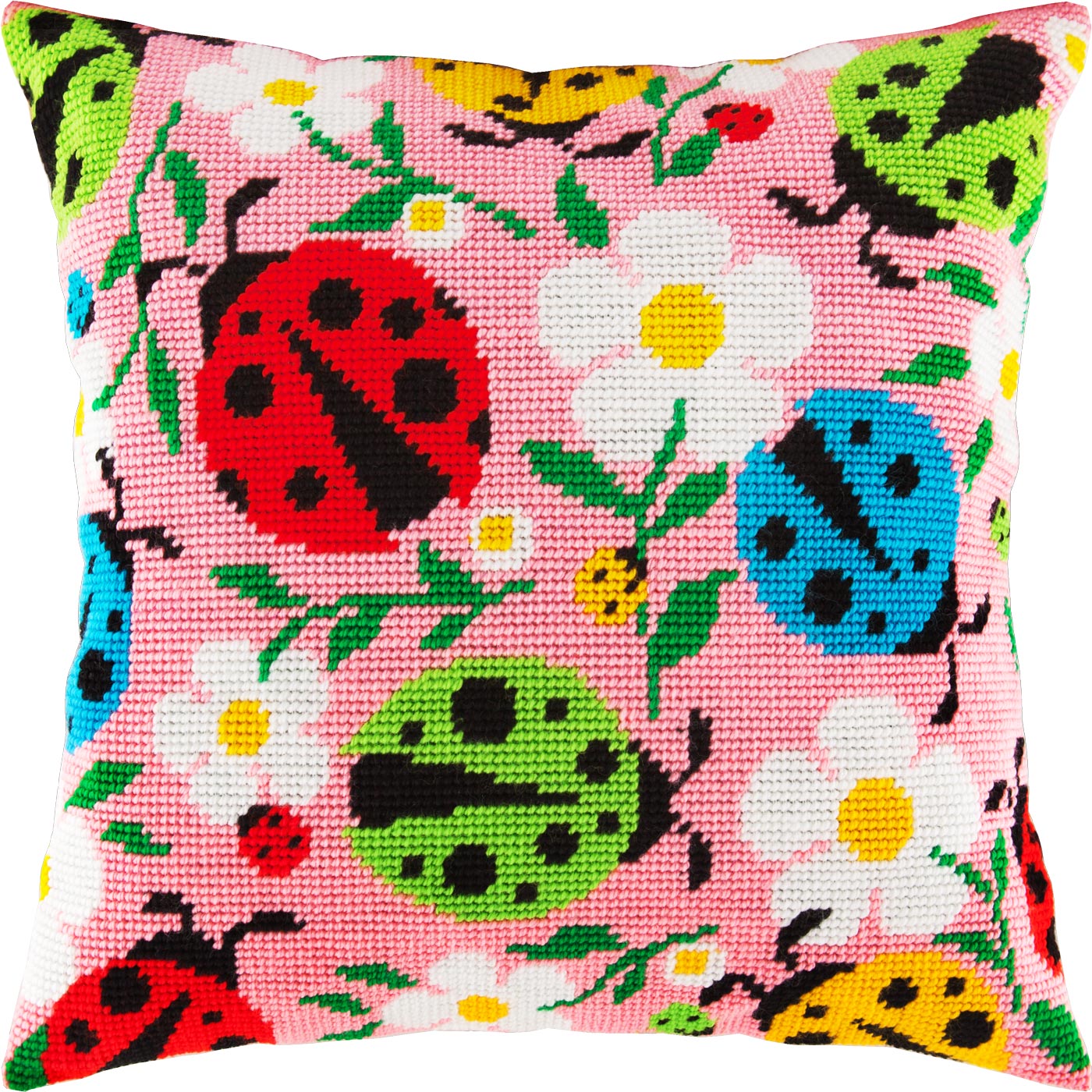 Needlepoint Pillow Kit "Ladybugs and Flowers"