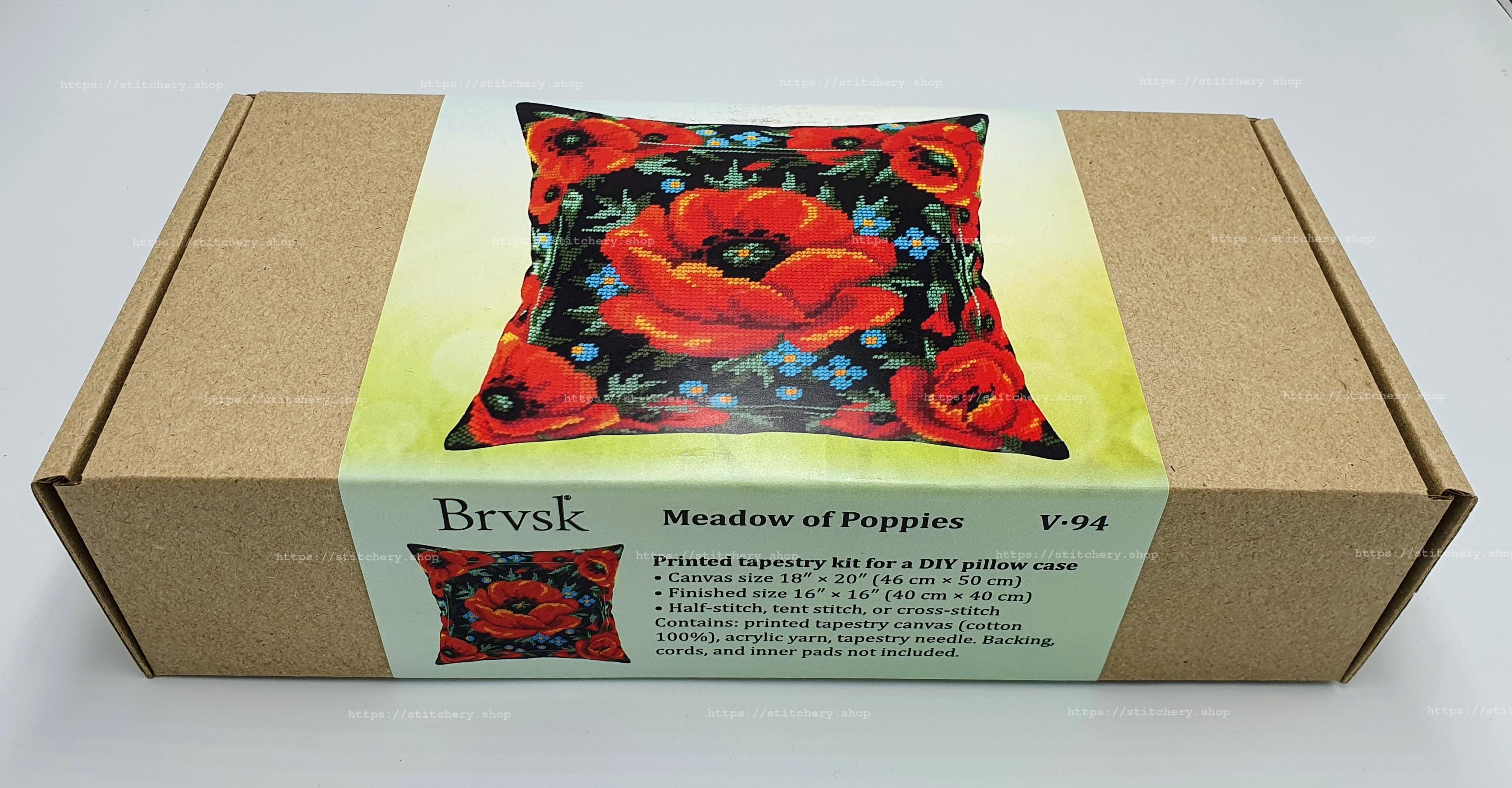 Needlepoint Pillow Kit "Meadow of Poppies"