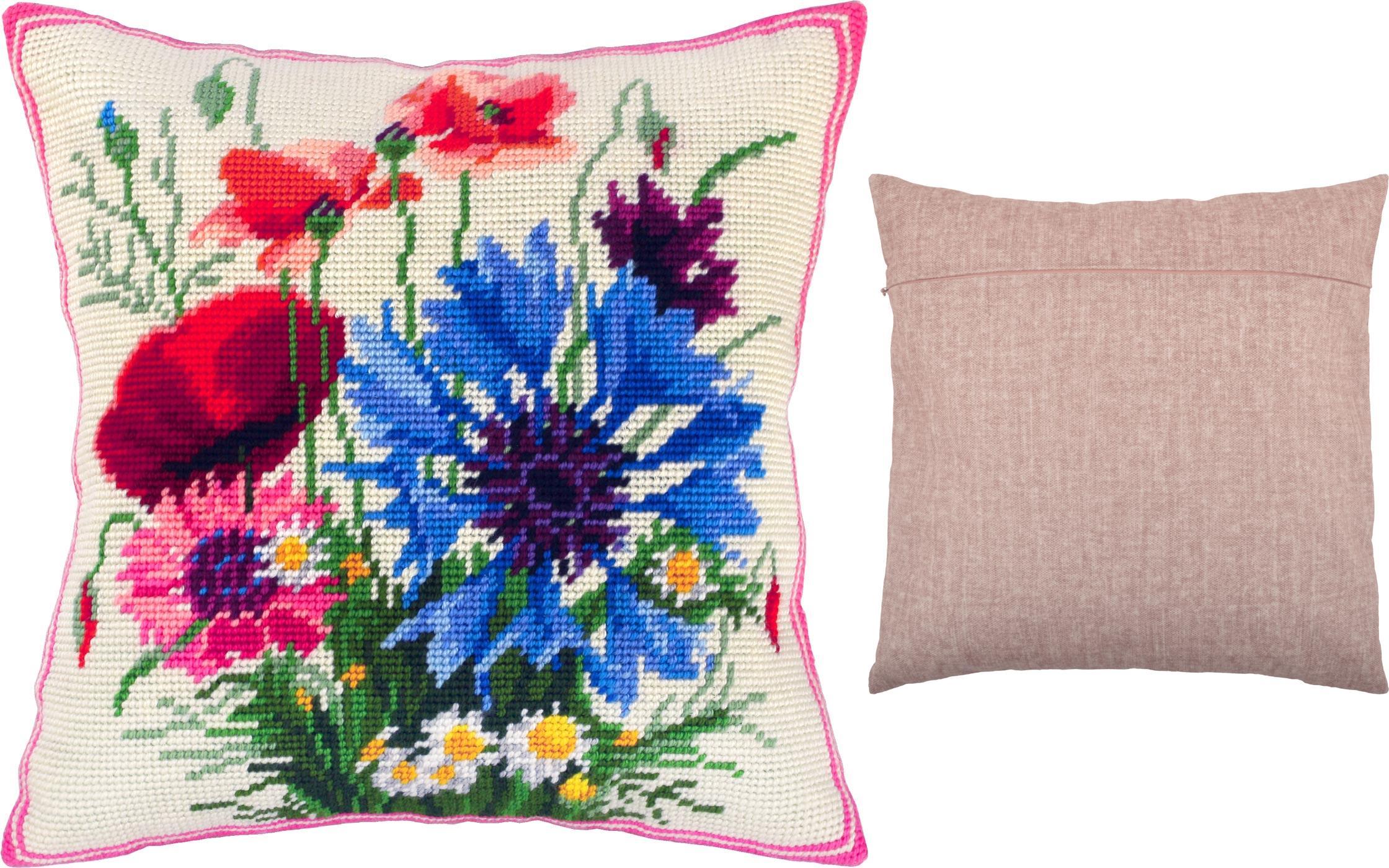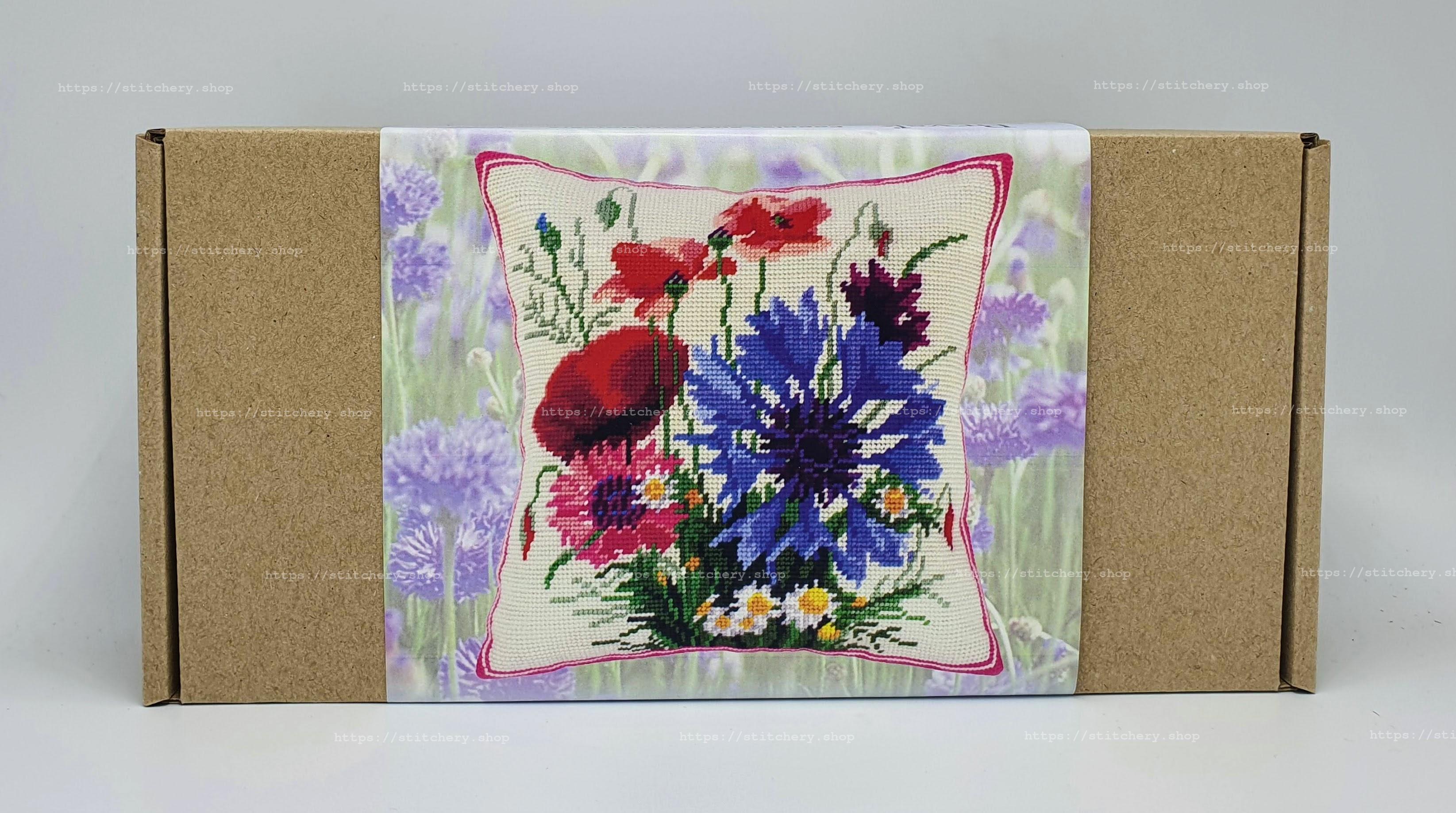 Needlepoint Pillow Kit "Poppies and Cornflowers"