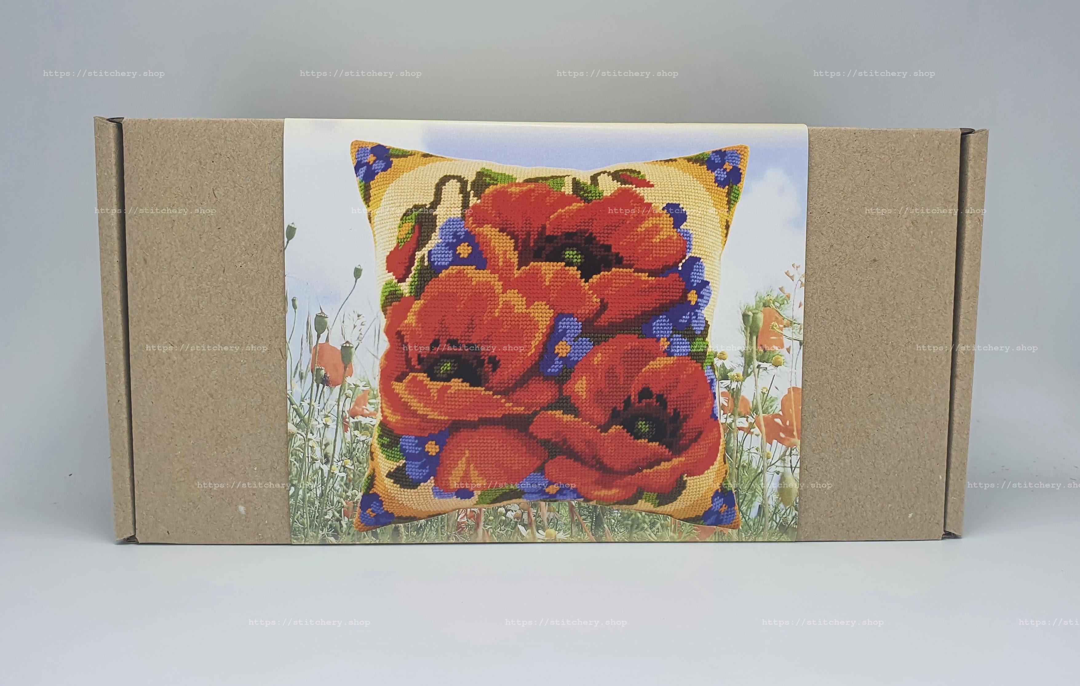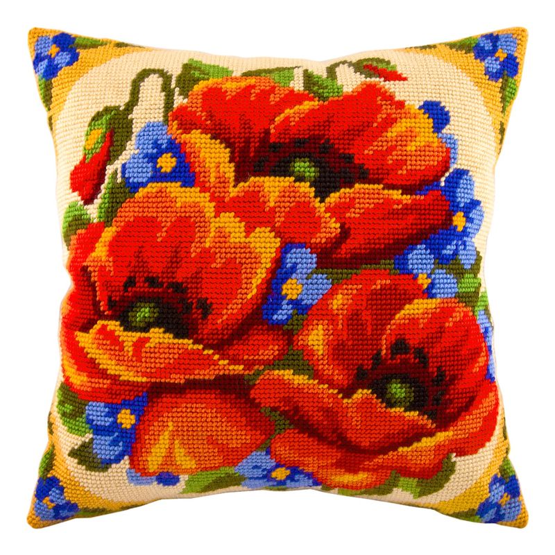 Needlepoint Pillow Kit "Poppies and Forget-Me-Nots"