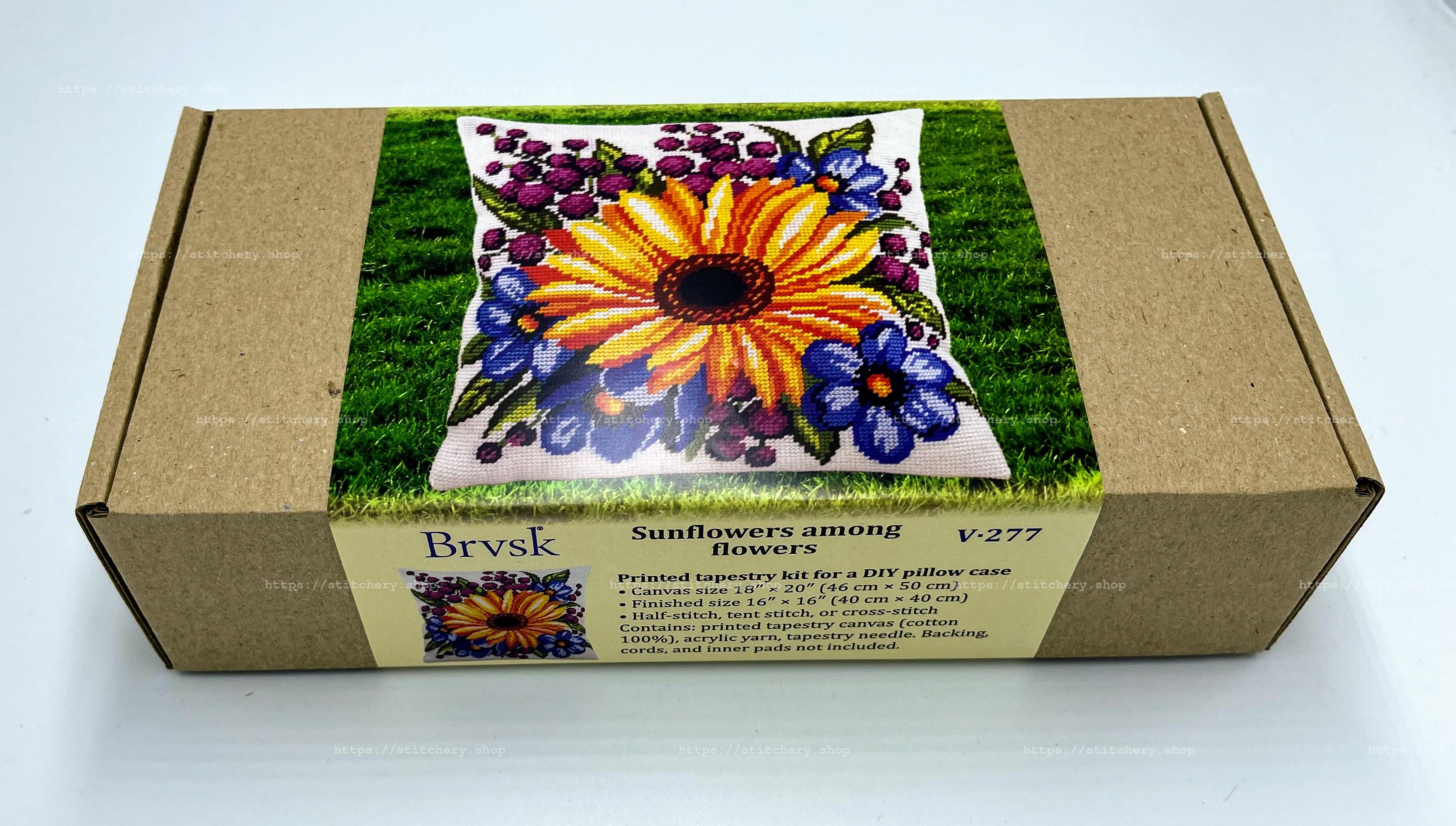 Needlepoint Pillow Kit "Sunflower among flowers"